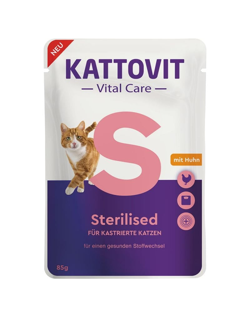 A Kattovit Vital Care Sterilised a hozzáadott savasítónak (DL-metionin) köszönhetően segíthet az ivartalanított macskáknak az egészséges húgyutak fenntartásában. Támogathatja az egészséges anyagcserét is. A KATTOVIT Vital Care eledelt táplálkozási szakértőkkel együttműködve fejlesztették ki, és a funkcionális táplálkozást kiváló ízzel ötvözi. Ez a kiegyensúlyozott, teljes értékű eledel segíthet macskájának abban, hogy macskája élettel telibb életet éljen.