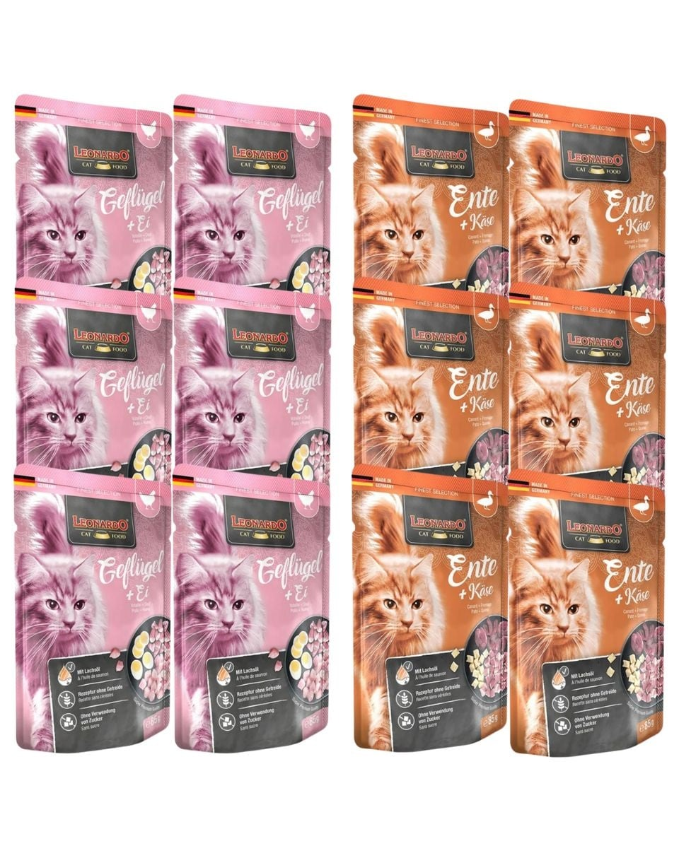 A Leonardo Finest Selection eledelek praktikus egyadagos adagokban kaphatók. Kíméletesen főzött, szaftos húst tartalmaznak kifinomult összetevőkkel. A lazacolaj hozzáadása javítja a macska bőrének és szőrzetének állapotát. A nedves eledel kiváló étrendi változatosságot biztosít a Leonardo szárazeledel mellett.