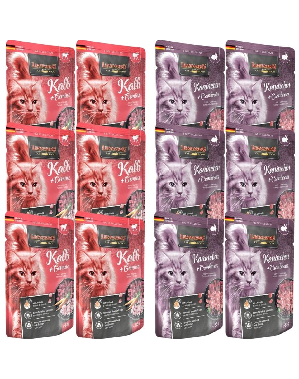 A Leonardo Finest Selection eledelek praktikus egyadagos adagokban kaphatók. Kíméletesen főzött, szaftos húst tartalmaznak kifinomult összetevőkkel. A lazacolaj hozzáadása javítja a macska bőrének és szőrzetének állapotát. A nedves eledel kiváló étrendi változatosságot biztosít a Leonardo szárazeledel mellett.