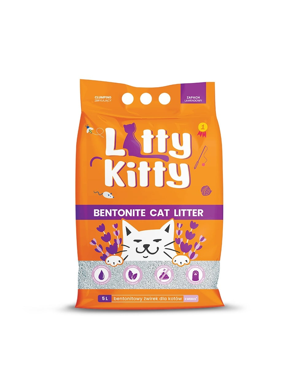 ALitty Kitty bentonit egy hatékony és nedvszívó természetes agyag alom, amely nedves állapotban könnyen eltávolítható csomókká csomósodik - egy csomag akár 15 hétig is kitart*. Alacsony porzású és kíméletes - nem irritálja a macska mancsait. Kellemes levendula illata hatékonyan elfedi a kellemetlen szagokat.