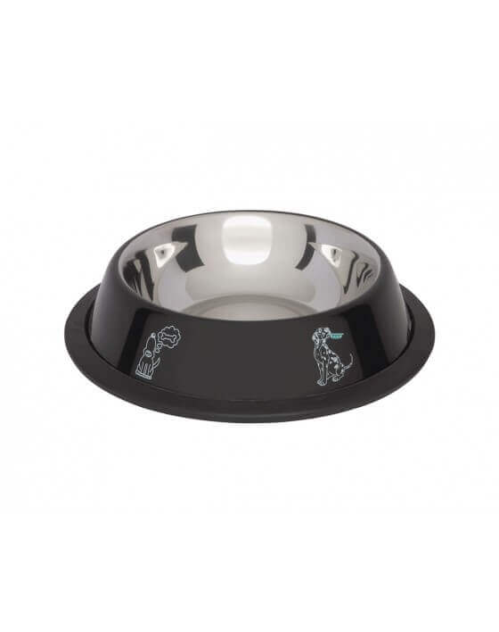 LOLO PETS Tál gumis talpon, színes felirattal, fekete, 0,7 L