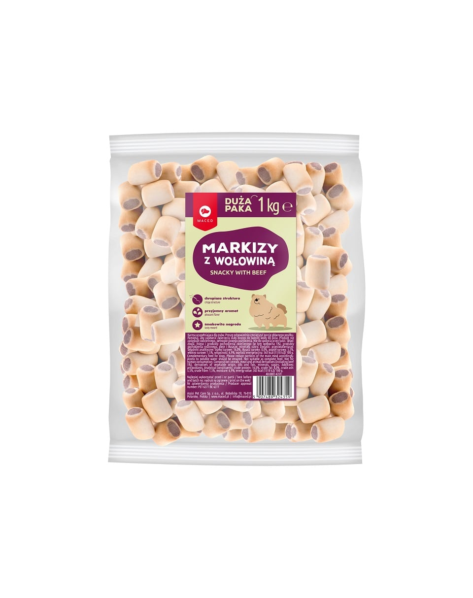 A Beef Marques egy olyan csemege, amely nagyszerű kiegészítője a napi étrendnek. Húsos íze és aromája kivételesen ízletes és ropogós rágcsálnivalóvá teszi minden kutya számára. A Marques igazi lakoma kedvencei számára és magas energiatartalmú fehérjeforrás. A jutalomfalat adható jutalomként a jó viselkedésért vagy a kiképzés során. Ez egy univerzális jutalomfalat minden kutya számára. Nem tartalmaz mesterséges aromákat.