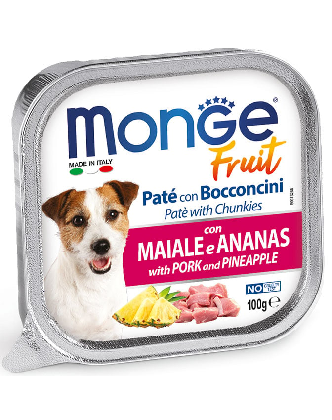 A Monge gyümölcspástétom sertéshússal és ananásszal egy eredeti olasz recept alapján készült, ízletes, tapintható darabkákkal készült pástétom. Rendkívül tápláló, sertéshússal és ananásszal, színezékek, tartósítószerek és transzzsírok nélkül.