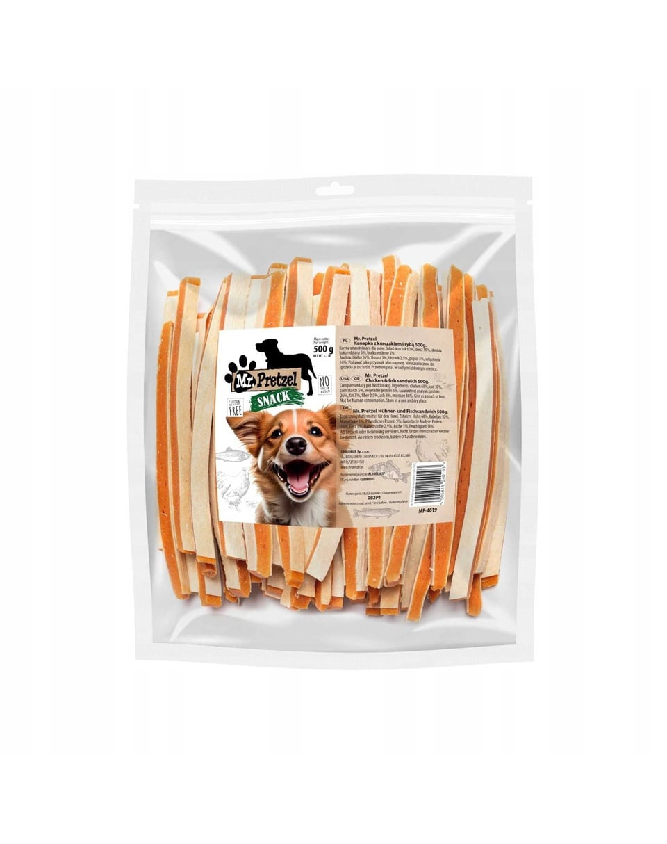 A Mr. Pretzel csirkés és halas szendvicsek természetes, ízletes és egészséges prémium finomságok minden fajtájú és korú kutya számára.