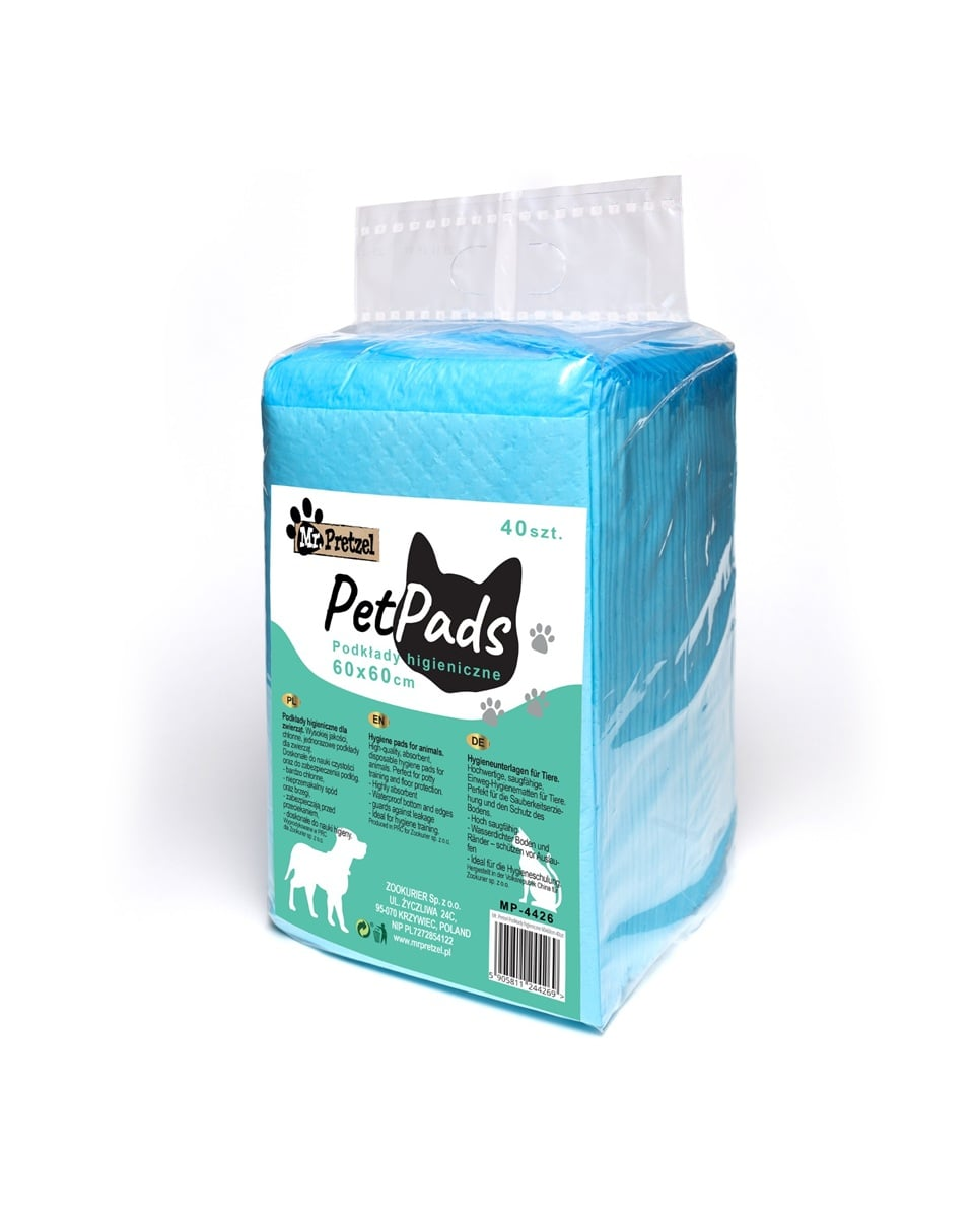 Mr. Pretzel higiéniai alátétek a tisztaság és higiénia fenntartásának nélkülözhetetlen segédeszköze otthon. Kiválóan alkalmasak a kölykök szobatisztaságra tanításához, valamint idősebb, beteg vagy műtét utáni kutyák esetében. Ez egy prémium kategóriás termék – nagyon nedvszívó, tartós és biztonságos az állatok számára.