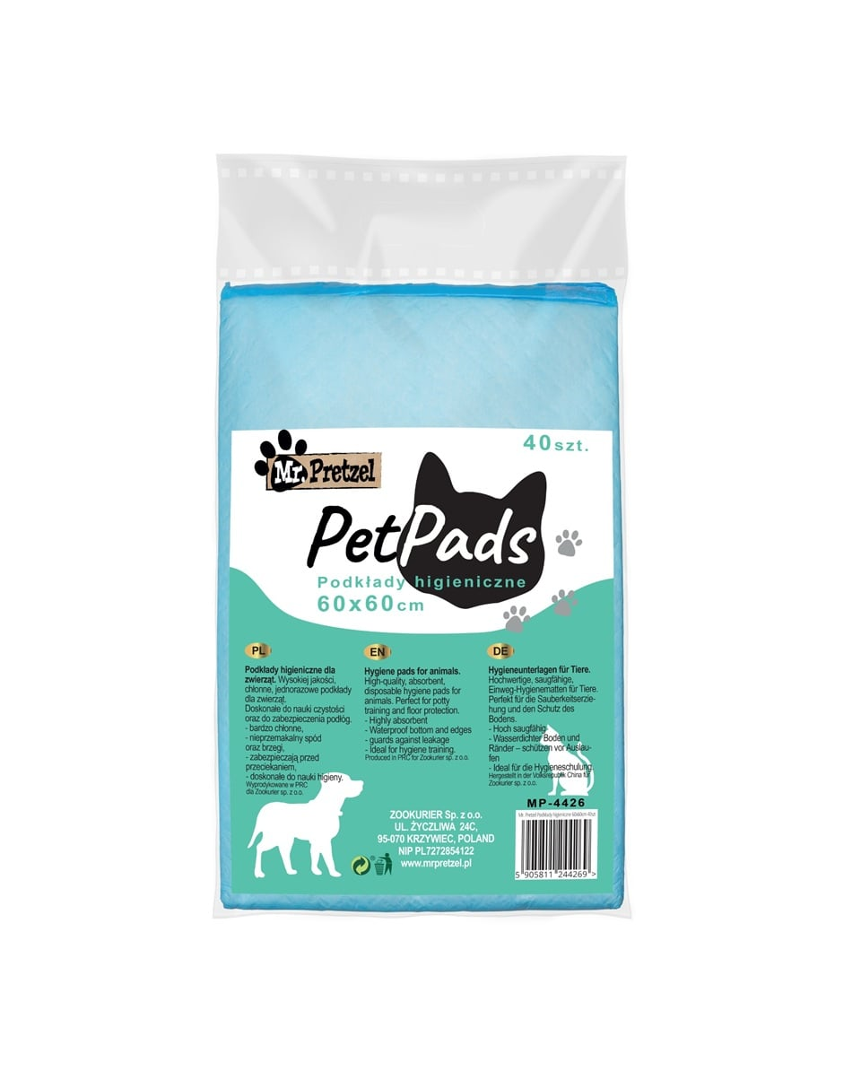 A Mr. Pretzel higiéniai alátétek 60×60 cm – 40 db tökéletes nedvszívóképesség, tartósság és kényelem kombinációja. Minden otthonban megállják a helyüket, ahol a higiénia és a kedvenc kényelme fontos – a szobatisztaság tanulásától a napi ápolásig.