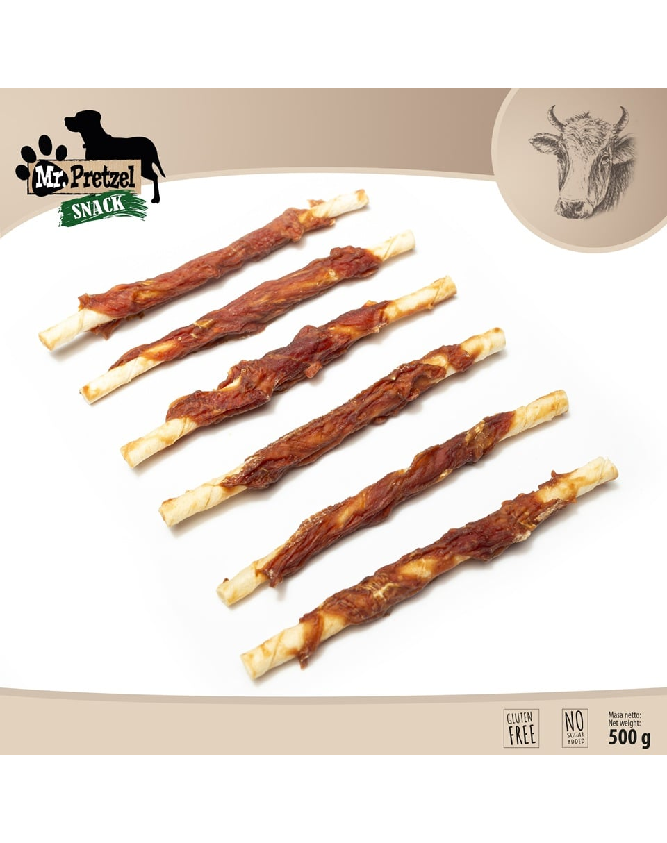 A Mr. Pretzel márkájú, húsba burkolt rúd egy különleges prémium kutyakeksz, amely ötvözi a kiváló ízt a funkcionalitással.