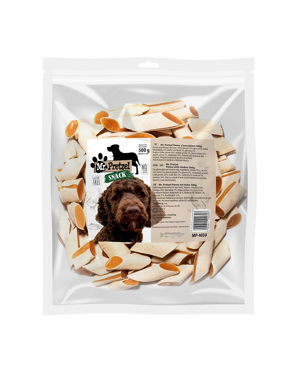 PREMIUM - Mr. Pretzel Penne csirkével a legmagasabb minőségű, rendkívül ízletes, húsos jutalomfalatok a négylábú barátod számára.