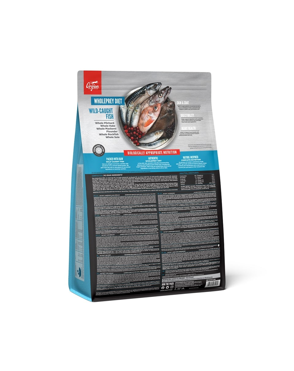 Eltérően más száraztápoktól, az ORIJEN halainak 2/3-a FRISS (hűtve, semmi tartósítószer) vagy NYERS (gyorsfagyasztva, semmi tartósítószer), az összetétel első 6 helyén csak ilyen halak szerepelnek.