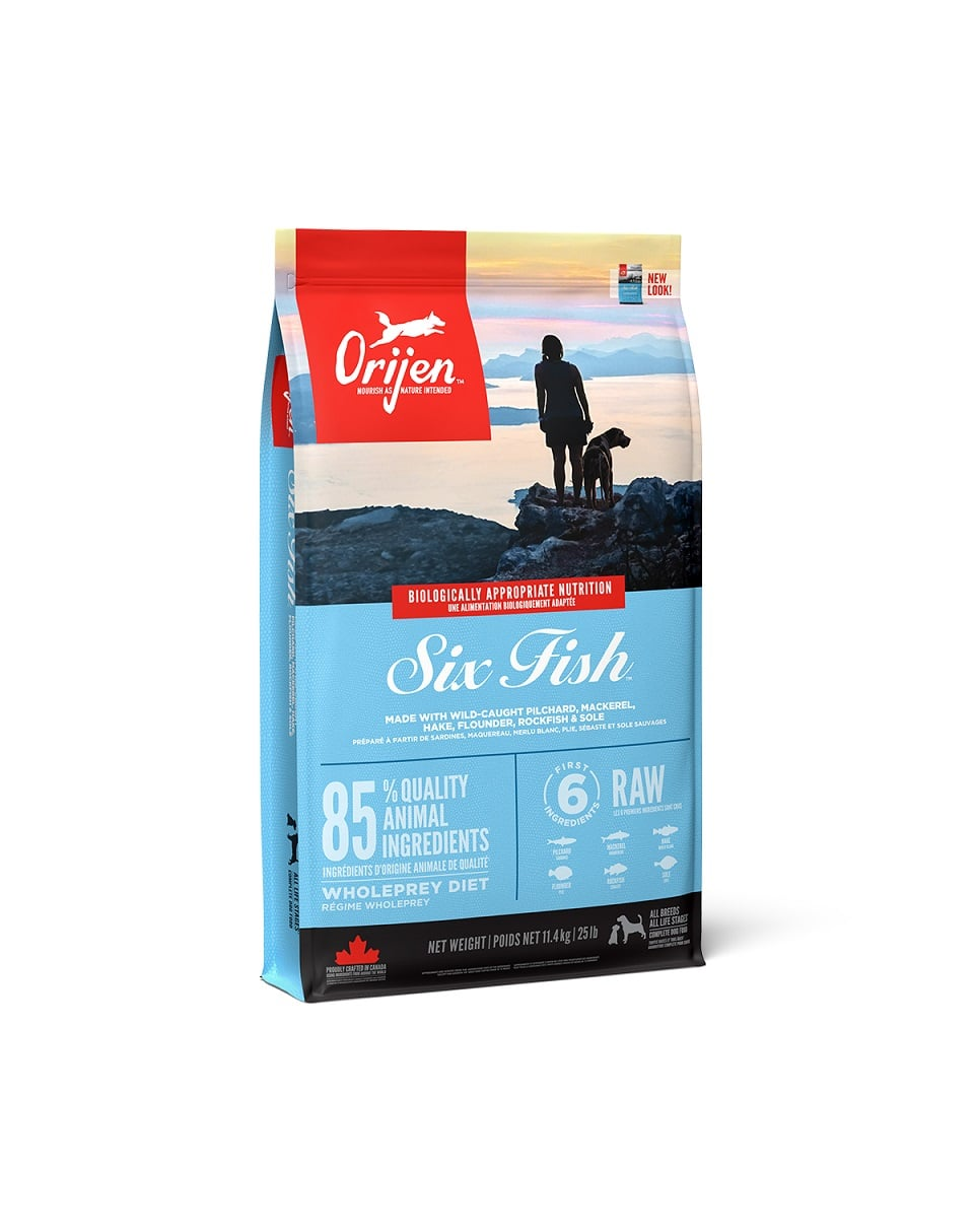 A 38 %-os tápláló fehérje és a 19 %-os alacsony szénhidrát, az ORIJEN 6 FISH kielégíti a kutya biológiai és evolúciós szükségleteit.