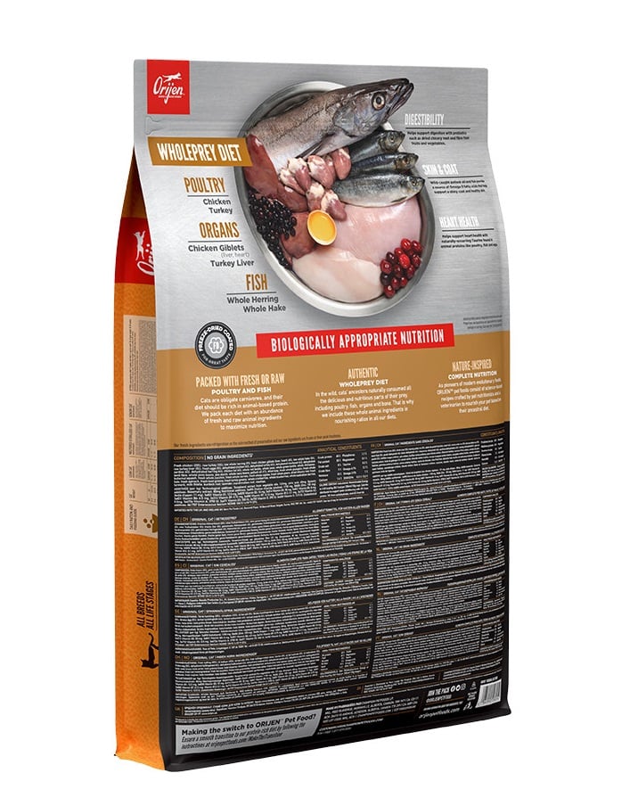 40 %-os tápláló fehérjetartalom, 19 %-os alacsony szénhidrát, az ORIJEN egyaránt kielégíti a kölyök-és felnőtt macskák biológiai és evolúciós szükségleteit.