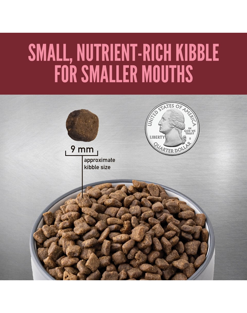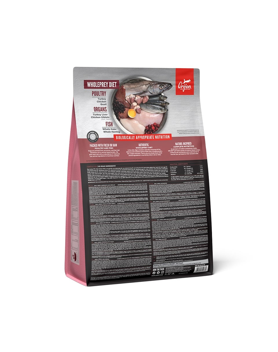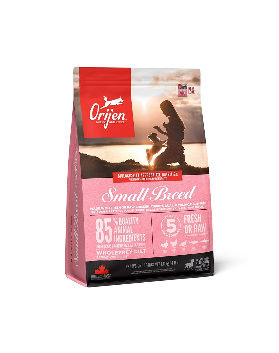 A kistestű kutyusoknak is hasonló táplálékra van szükségük, mint a vadon élő ragadozóknak: többféle húsban bőséges étrend, amely biztosítja a változatos fehérje-és zsírforrásokat. Pulyka, csirke, fürj, sziklahal és hering van terítéken, mindez kiegészül luteinnel dúsított tojással. A WholePrey arányainak megfelelően, nem maradhatnak ki a belsőségek és porcok sem a receptből. Ezért az ORIJEN Small Breed tápanyagösszetétele illeszkedik az ősi étrendhez, a tápszemcse mérete kistestűek igényeihez lett igazítva.