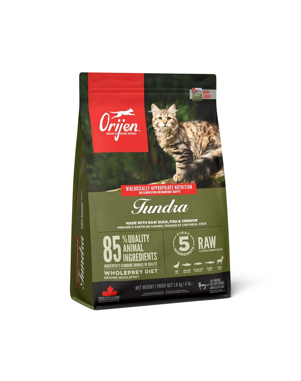 A tápszemcséket fagyasztva szárított kecske-és gímszarvasmájjal vontuk be, drámaian fokozva az ORIJEN Tundra ízletességét, még a válogatós cicusok is imádni fogják.