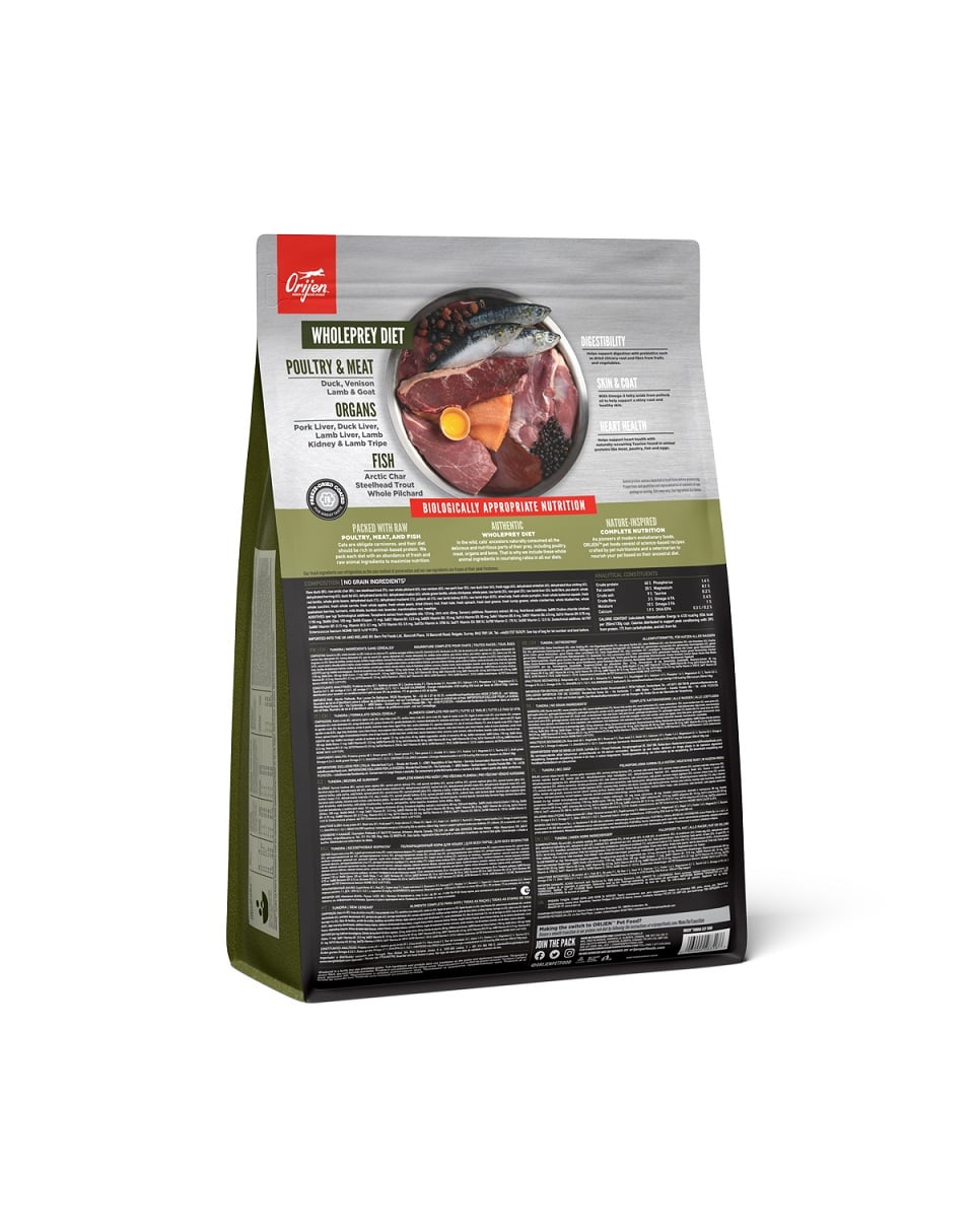 Eltérően más száraztápoktól, az ORIJEN húsainak 2/3-a FRISS (hűtve, semmi tartósítószer) vagy NYERS (gyorsfagyasztva, semmi tartósítószer), az összetétel első 10 helyén csak ilyen húsok szerepelnek.
