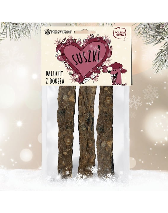 PAKA ZWIERZAKA karácsonyi csemegék A tőkehalrudacskák rendkívül aromás, természetes csemegék, amelyeket minden kutyának, beleértve a kölyökkutyákat is, ajánlunk.