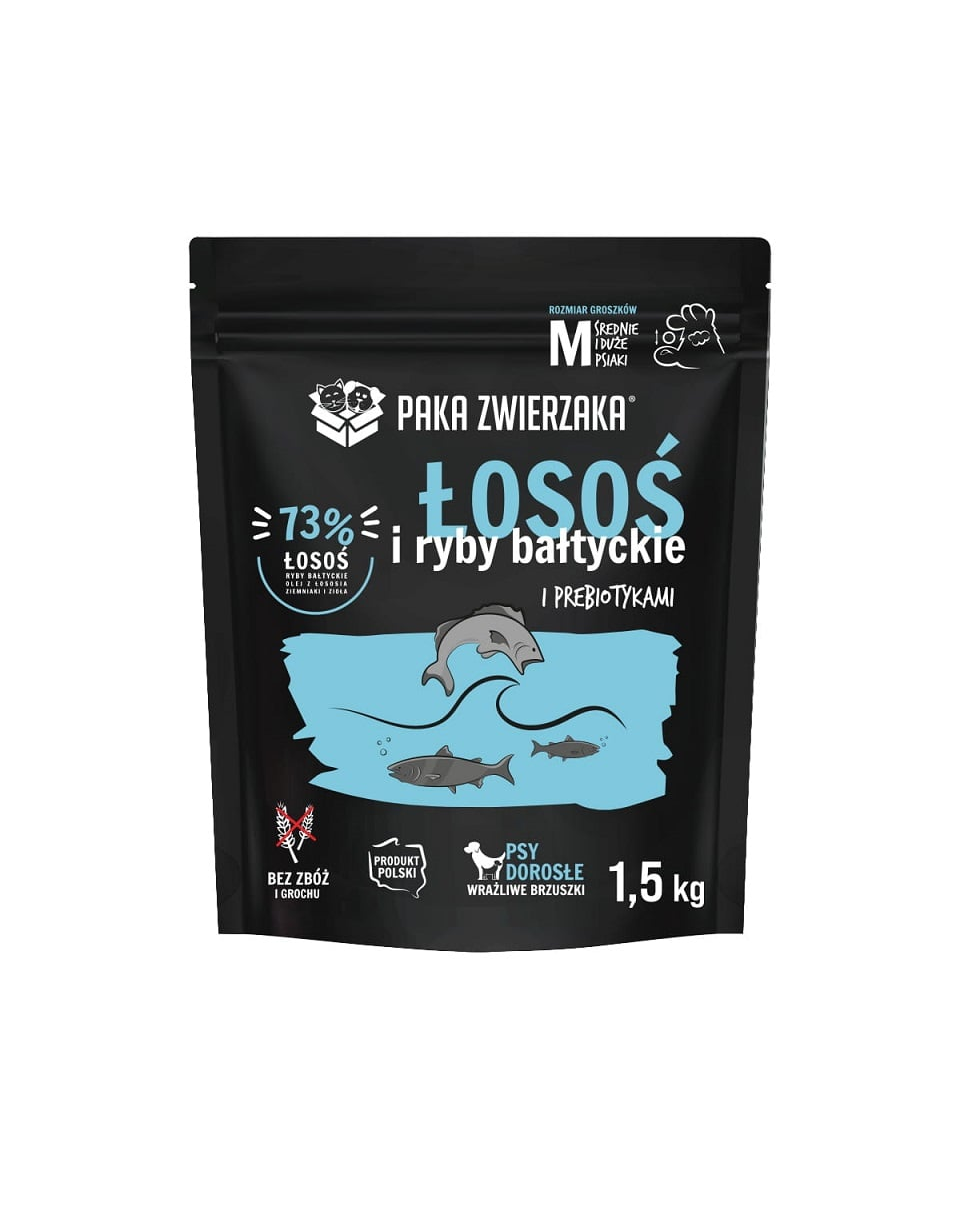 Tökéletesen kiegyensúlyozott SUPERPREMIUM minőségű szárazeledel gabonafélék, borsó, kukorica, szója, tartósítószerek és mesterséges színezékek nélkül. A helyi beszállítóktól származó, kiváló minőségű lazachús, balti hal, zöldségek és gyógynövények biztosítják a magas ízletességet és a könnyű emészthetőséget. Ideális táp érzékeny gyomrú és gabonafélékkel szemben intoleráns kutyák számára.