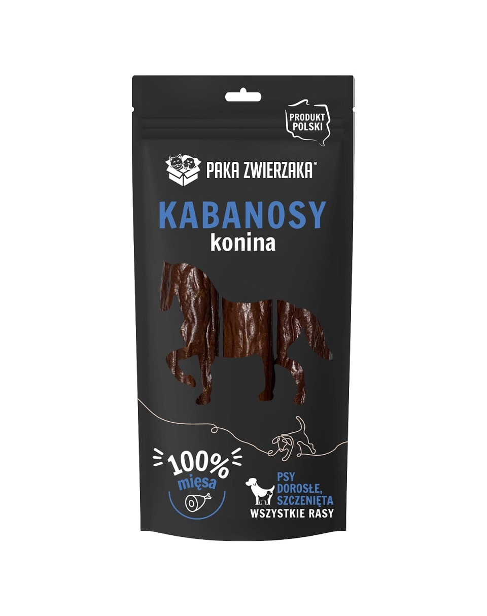 Ropogós, ízletes kabanos lóhúsból készült. Kiváló, 100%-ban természetes kiegészítője minden méretű kutya étrendjének. A kollagén hozzáadása támogatja a keringési és emésztőrendszer megfelelő működését. A meleglevegős szárítás rendkívüli ropogósságot kölcsönöz nekik, és megőrzi az összes értékes vitamint és ásványi anyagot. Rágás közben masszírozza az ínyt, tisztítja a fogkövet és kielégíti a rágás iránti igényt. A termék nem tartalmaz tartósítószereket, ízfokozókat, aromákat vagy töltőanyagokat.