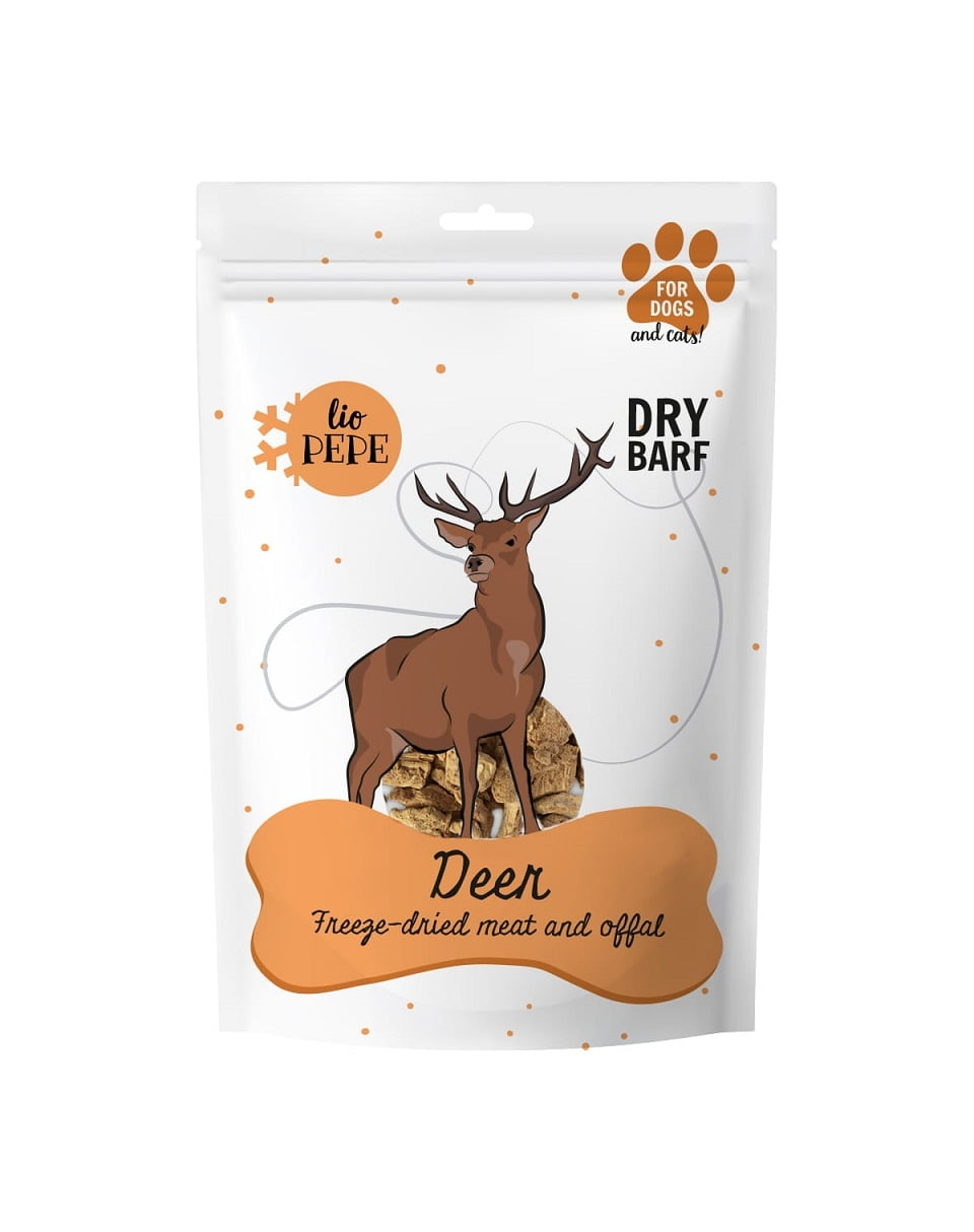A PEPE ANIMAL PACK fagyasztva szárított fagyasztva szárított szarvashús tökéletes kiegészítője kedvence étrendjének.