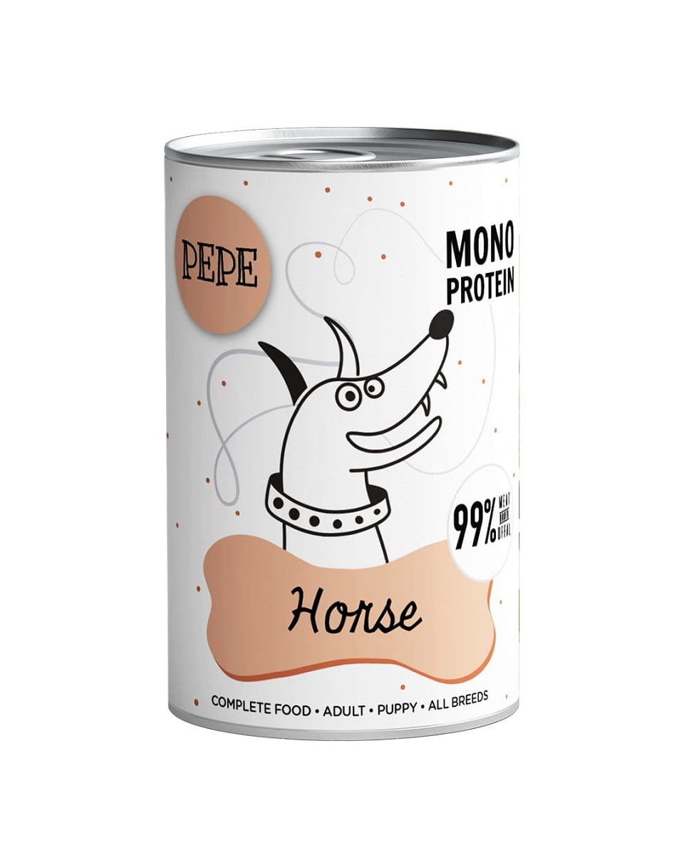 Lóhús 99% (ebből 50% lóhús, 21% lóhús-belsőség, 28% lóhús-leves), ásványi anyagok 1%.