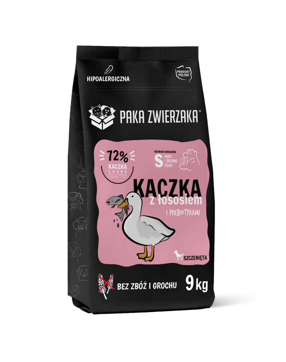Tökéletesen kiegyensúlyozott SUPERPREMIUM minőségű, gabonaféléktől, borsótól, kukoricától, szójától, tartósítószerektől és mesterséges színezékektől mentes szárazeledel kölyökkutyáknak. A helyi beszállítóktól származó kiváló minőségű kacsahús, lazac, zöldségek és fűszernövények biztosítják a magas ízletességet és a könnyű emészthetőséget. Ideális formula érzékeny gyomrú és gabonafélékkel szemben intoleráns kutyák számára.
