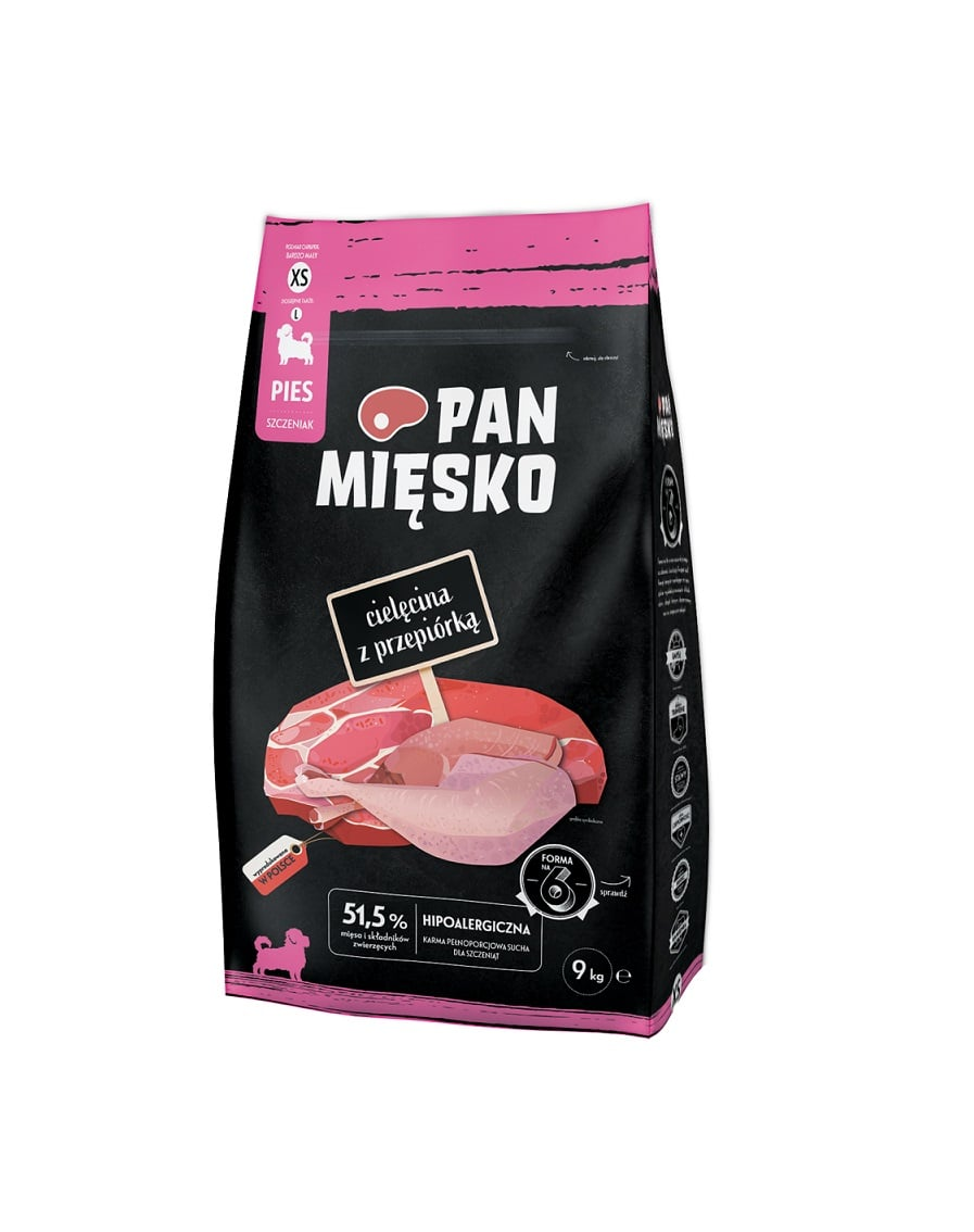 Ismerje meg a Pana Mięsko hipoallergén száraz kutyatápját. Gondosan válogatott húsokat tartalmaz lédús lengyel almával, egészséges zöldségekkel és értékes tápanyagokkal, amelyek pozitívan befolyásolják kutyája egészségét és kondícióját. Receptjeinket szakértők állítják össze, hogy négylábú társa megkapja, amire szüksége van. Az Ön kutyája a legjobbat érdemli.