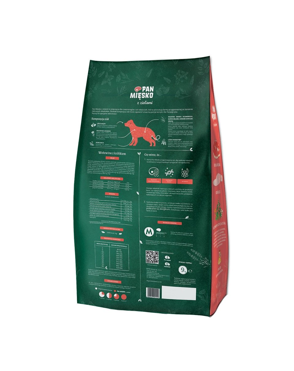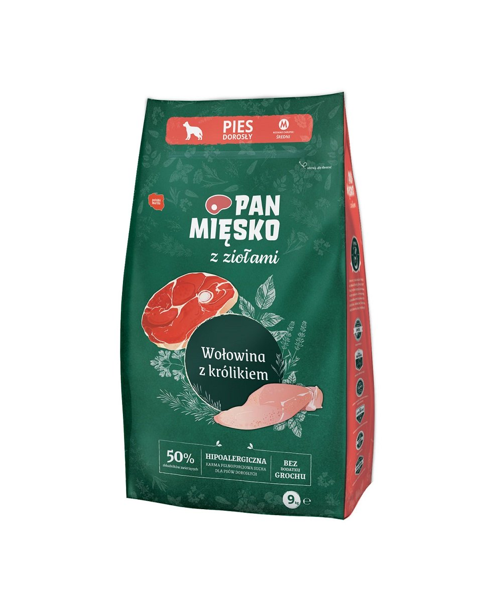 PAN MIĘSKO gyógynövényekkel – marhahús nyúllal (M) 9 kg, közepes testű fajták számára