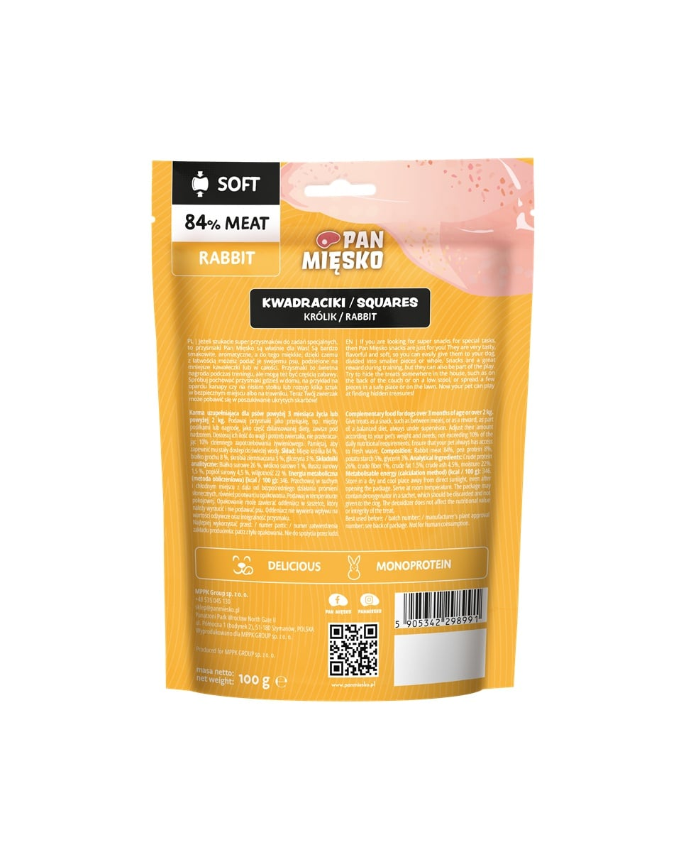 Ha különleges feladatokhoz keresel szuper jutalomfalatokat, akkor a Pan Mięsko falatok pont neked valók! Nagyon ízletesek, aromásak és puhaak, így könnyen adhatod őket kutyádnak, kisebb darabokra osztva vagy egészben.