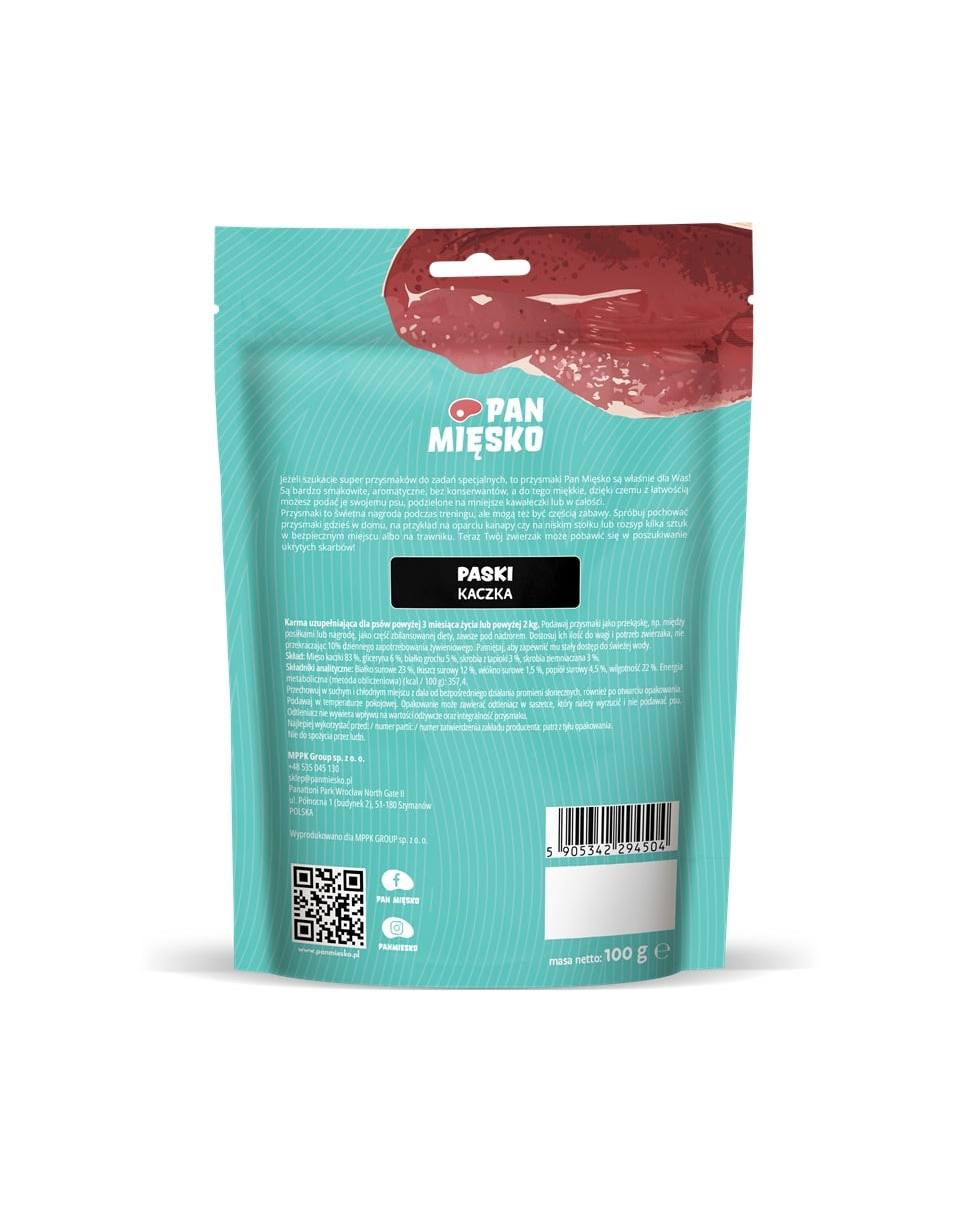 Ha szuper jutalomfalatokat keresel különleges feladatokhoz, akkor a Pan Mięsko falatok éppen neked valók! Nagyon ízletesek, aromásak, tartósítószerek nélkül, és ráadásul puhák, így könnyedén adhatod őket kutyádnak, kisebb darabokra vágva vagy egészben.