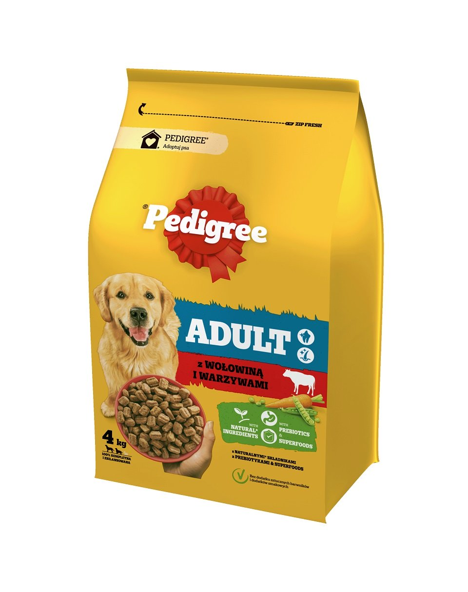 Száraz táp PEDIGREE Adult marhahússal és zöldségekkel teljes értékű táplálék nagy és közepes testű kutyák számára. A WALTHAM™ Állati Tudományok Intézetének állatorvosai és táplálkozási szakértői által kidolgozott receptúra prebiotikumokat és szuperélelmiszereket tartalmaz: sárgarépát, amely A-vitamin forrása a béta-karotinból, és borsót - rost- és ásványi anyagforrást. Kedvenced megérdemli a boldog mosolyt, ezért fontos számára az egészséges fogak és ínyek fenntartása. A táp különleges méretű és textúrájú szemcséi segítenek tisztítani kutyád fogait. A B-vitaminok és a cink támogatják az egészséges bőrt és szőrt, hogy kutyád jól nézzen ki és jól érezze magát. A tápban található E-vitamin antioxidáns tulajdonságokkal bír, és támogatja kutyád természetes védekező mechanizmusait. A PEDIGREE táp természetes rostot, prebiotikumokat és kiváló minőségű fehérjéket tartalmaz, amelyek segítik az egészséges emésztést, mert minden kutyának megérdemli az egészséges pocakot.