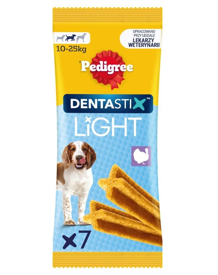 Tudományosan bizonyított, hogy a PEDIGREE DENTASTIX Light tisztítja és védi a fogakat. Ezek a gondosan válogatott összetevőkből készült, könnyű, rágásra alkalmas állagú jutalomfalatok, amelyeket a kutyák imádnak. Ezenkívül 30%-kal kevesebb kalóriát tartalmaznak a DENTASTIX DAILY-hez képest, és ideálisak minden napra.