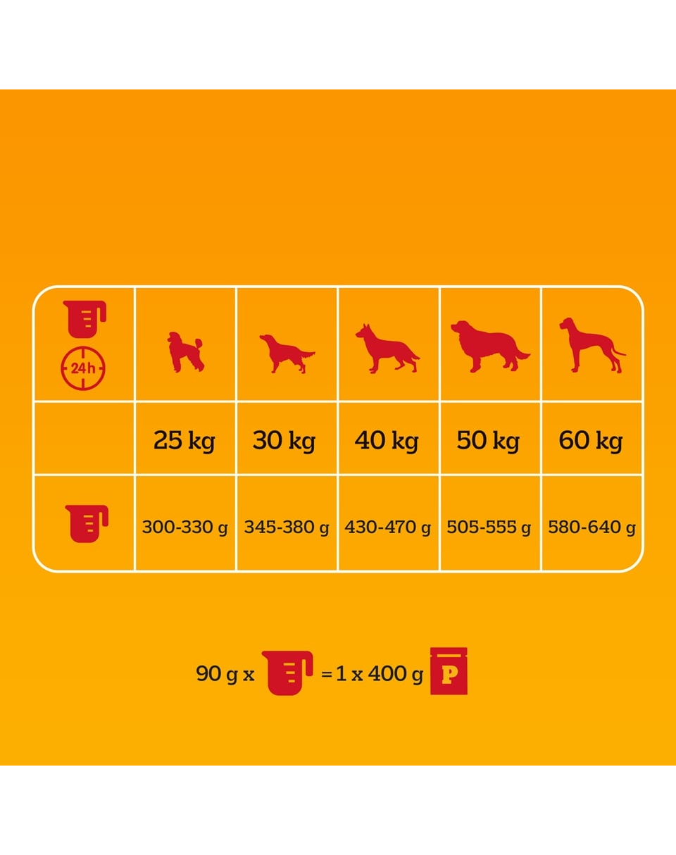 90 g száraz táp helyettesíthető 1 db 400 g-os PEDIGREE nedves táp konzervvel.