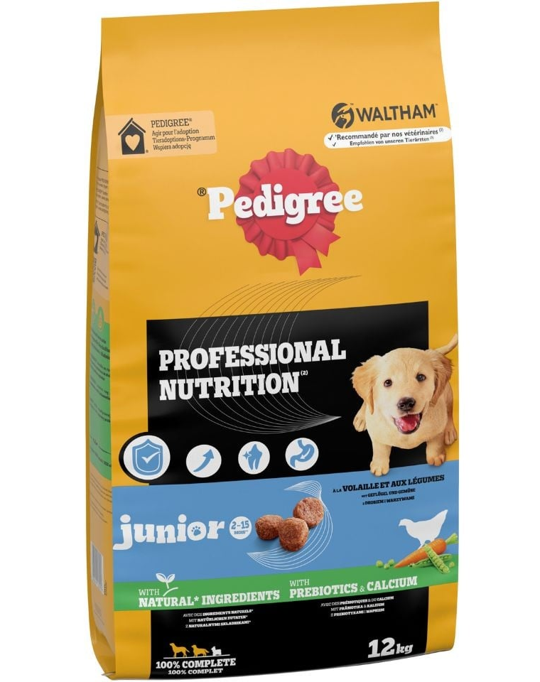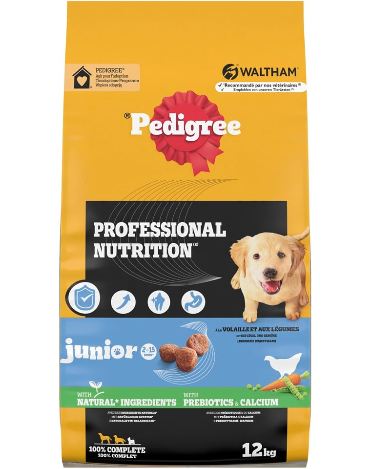 A PEDIGREE COMPLETE száraz táp 100%-ban teljes értékű és kiegyensúlyozott étkezés, természetes összetevőkből, vitaminokkal, ásványi anyagokkal és prebiotikumokkal kiegészítve – mindent tartalmaz, amire minden kölyökkutyának szüksége van, hogy energikus, boldog életet éljen. Mesterséges színezékek és ízfokozók hozzáadása nélkül.