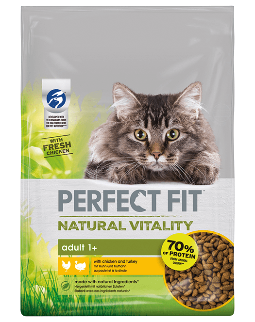 Mivel eteted a macskádat minden nap? Válassza a PERFECT FIT Natural Vitality 1+ macskaeledelt csirkével és pulykával. A WALTHAM Állattudományi Intézet állatorvosai és táplálkozástudományi szakemberei által kifejlesztett egyedi receptúrájával tűnik ki. A PERFECT FIT Natural Vitality macskaeledel csirkével és pulykával a macskákhoz hasonló könyörtelen húsevők táplálkozási igényeinek megfelelően magas állati fehérjetartalom jellemzi. Segíti az izomfejlődést és biztosítja az egészséges élethez szükséges aminosavakat. A PERFECT FIT Natural Vitality 1+ csirkével és pulykával megfelel a macska természetéből adódó táplálkozási szükségleteinek.