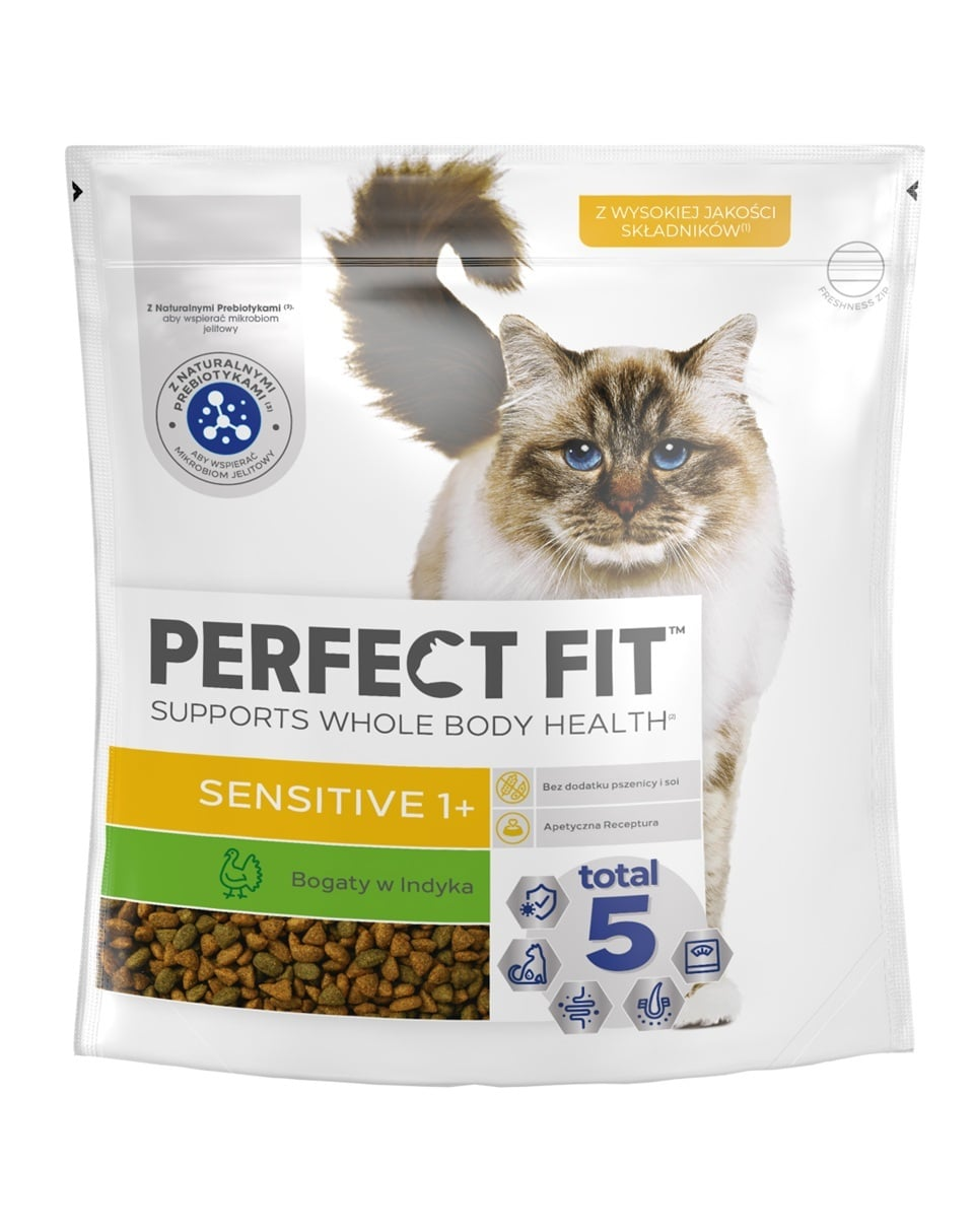 Pikáns táplálék Perfect Fit Sensitive 1+ pulykával gazdagítva egy különleges Total 5 formulát tartalmaz, amely támogatja a felnőtt kedvenc 5 legfontosabb egészségügyi területét: erősíti az immunrendszert, segíti az egészséges emésztést, támogatja az egészséges húgyúti rendszert, hozzájárul az egészséges bőrhöz és szőrhöz, valamint fenntartja az optimális kondíciót és testsúlyt. A Perfect Fit Sensitive 1+ receptúráját állatorvosok és táplálkozási szakértők közreműködésével dolgozták ki a WALTHAM Állati Tudományok Intézetében, hogy a szükséges tápanyagokat biztosítsák a felnőtt, érzékeny macskák számára. Mint más változatok, a pulykával gazdagított Perfect Fit Sensitive 1+ is további előnyöket kínál: búza- és szójamentes, ízletes receptúrával rendelkezik, és természetes prebiotikumokat tartalmaz a bélmikrobiom támogatására. Ha ezt a táplálékot választja érzékeny kedvence számára, biztos lehet benne, hogy a Perfect Fit egyedi formulája támogatja macskája egészségét, és további egészségügyi előnyöket biztosít, amelyek kifejezetten az életkorához és egyéni igényeihez igazodnak.