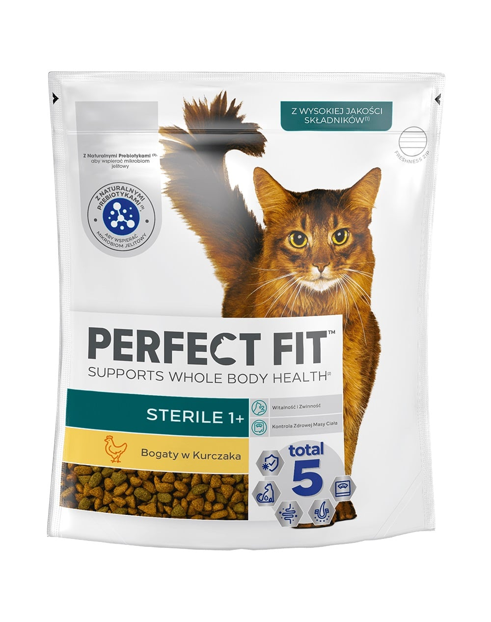A PERFECT FIT (Steril 1+) csirkéből készült összetevőkkel gazdagított, egyedülálló Total 5 formulát tartalmaz, amely támogatja a felnőtt háziállatok egészségének 5 legfontosabb területét: erős immunrendszer, egészséges emésztés, egészséges húgyutak, egészséges bőr és szőrzet támogatása. A Perfect Fit Sterile 1+ formulát az Állatorvosi Állattani Tudományos Intézet állatorvosaival és táplálkozástudományi szakembereivel együttműködve fejlesztették ki, hogy az ivartalanított felnőtt macskák számára alapvető tápanyagokat biztosítson. A Perfect Fit Sterile 1+ további előnyökkel is rendelkezik: növeli az energiát és a mozgékonyságot, segít az egészséges testsúly fenntartásában, és természetes prebiotikumokat tartalmaz a bélmikrobiom gondozása érdekében. Ha ezt az eledelt választja sterilizált vagy ivartalanított kedvence számára, biztos lehet benne, hogy az egyedülálló Perfect Fit formula támogatja macskája egész szervezetének egészségét, és további, kifejezetten macskája korához és egyéni igényeihez igazodó egészségügyi előnyöket biztosít.
