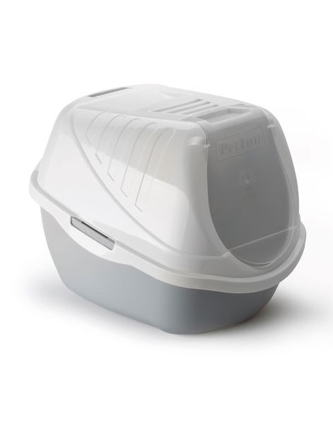 Műanyag beltéri macska WC. Pántos ajtóval rendelkezik macskája kényelme érdekében, és beépített, cserélhető szénszűrővel, amely elnyeli a kellemetlen szagokat. Funkcionális alomkanalat tartalmaz (a WC-n 2 helyen lehet rögzíteni: a tetején vagy az alján).