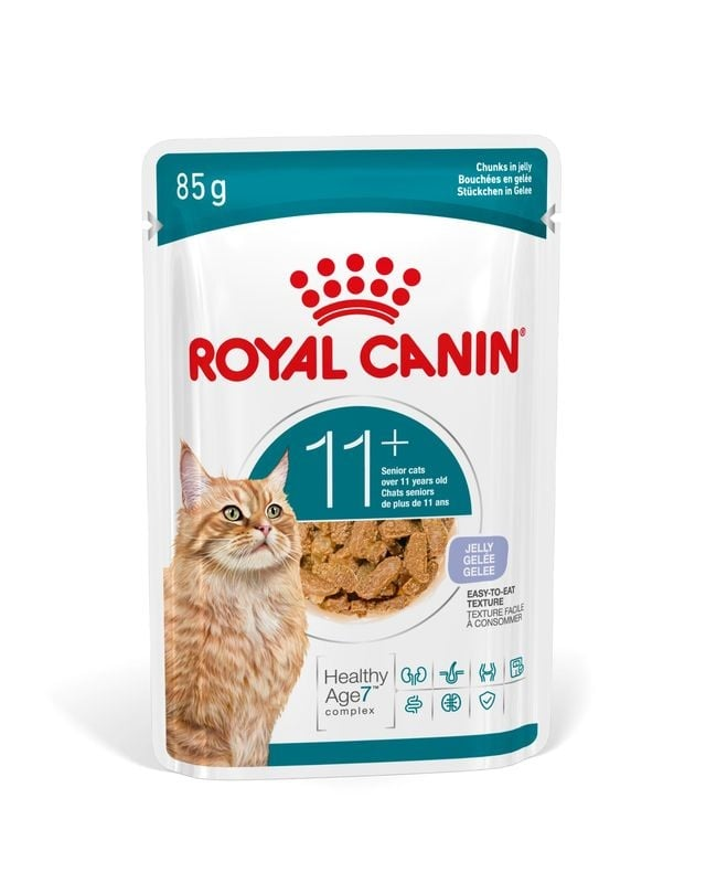 A ROYAL CANIN AGEING 11+ darabok zselében textúráját idősebb macskák számára fejlesztették ki és tesztelték, hogy megkönnyítse az étkezést és minden étkezés élvezetessé váljon.