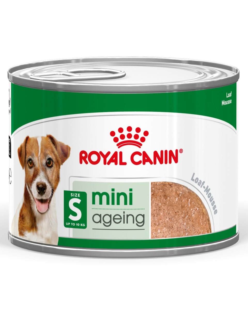 A ROYAL CANIN Mini Ageing pástét formájában teljes értékű táplálék, amely tápanyagok szempontjából megfelelően kiegyensúlyozott receptúrával rendelkezik, és kifejezetten a kis fajtájú idősebb kutyák különleges igényeinek figyelembevételével készült. A táplálék felnőtt kis fajtájú kutyák számára készült (testtömeg legfeljebb 10 kg, 12 éves kor felett).