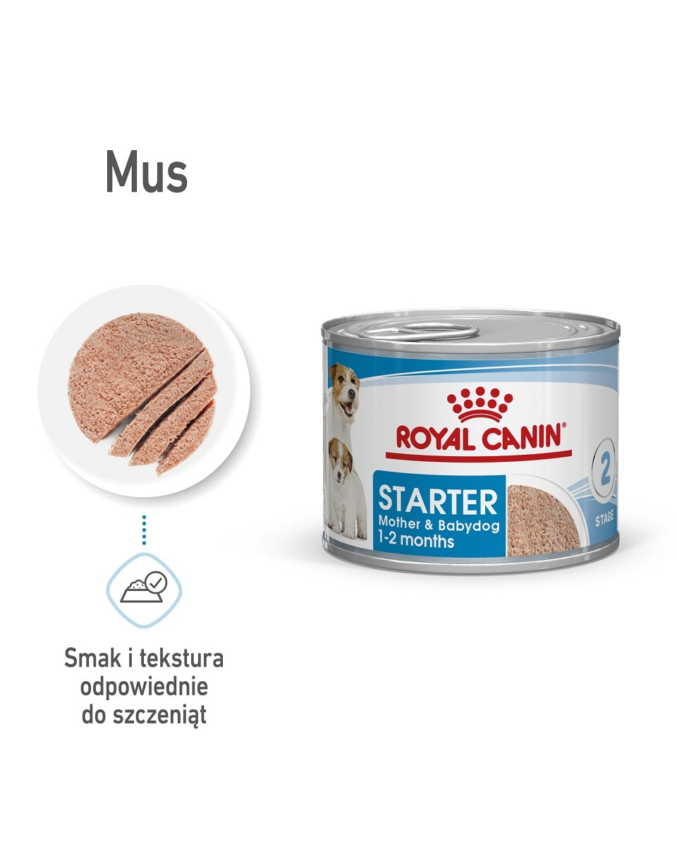 A ROYAL CANIN® Starter Mousse Mother & Babydog tápot kifejezetten a vemhes és szoptató anyakutyák és legfeljebb 2 hónapos korú, elválasztás alatt levő kölyökkutyáik tápanyagszükségleteit szem előtt tartva fejlesztettük ki.