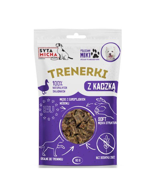 Kutyakiképzők kacsával. Monoproteines termék, ideális az allergiás kutyák számára. A-, C- és E-vitamint tartalmaznak az immunitás erősítése érdekében.