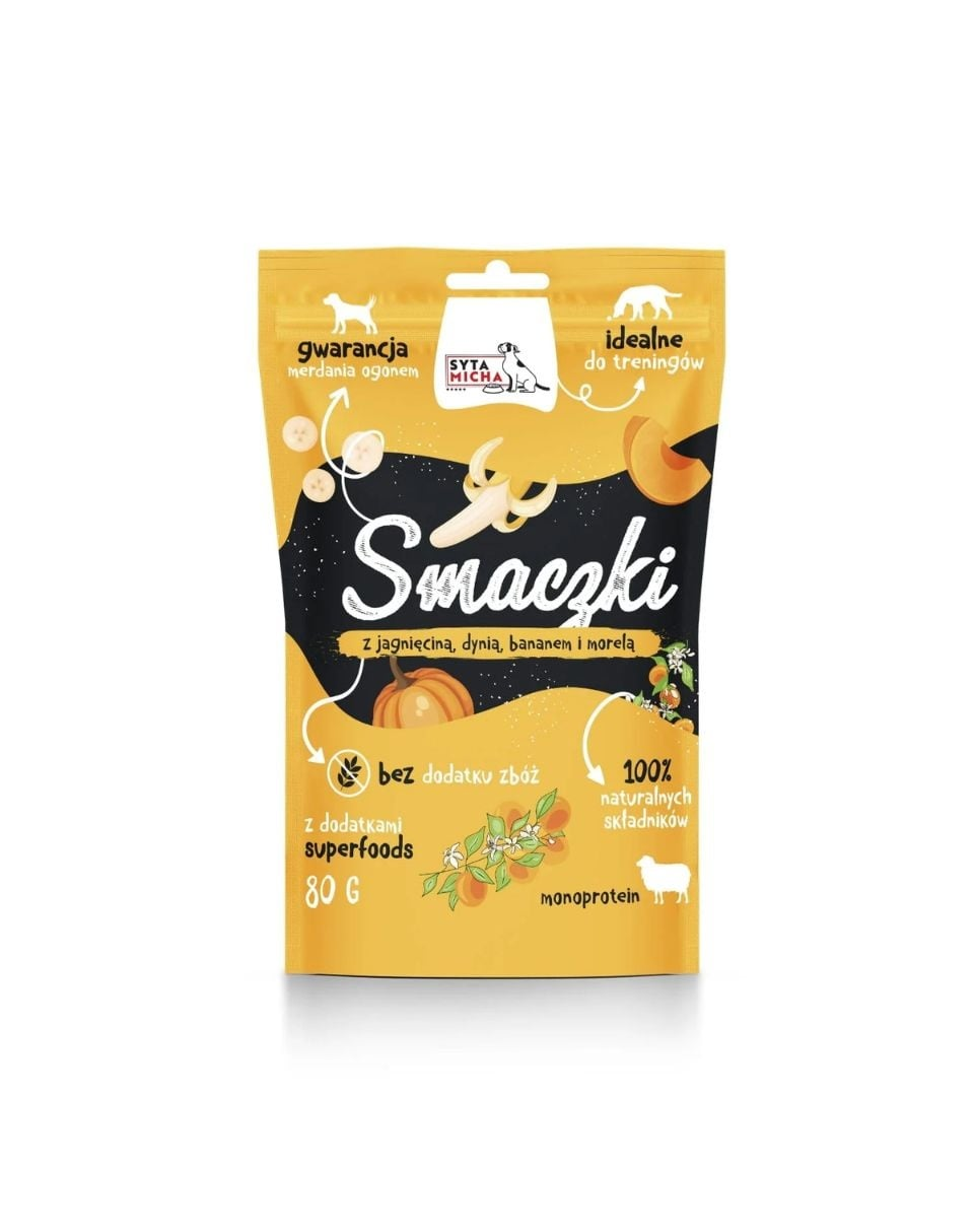 Aromás, természetes tréningfalatok, amelyek bárányhúsból készültek, gyümölcsökkel és zöldségekkel gazdagítva. Ideális gyors, egészséges jutalom kutyák számára minden életkorban — kölyökkutyáktól az idősebbekig.