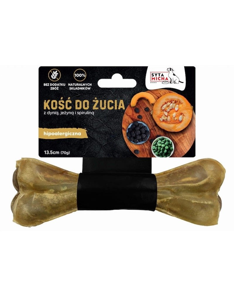 A Syta Micha hipoallergén lóhúsos rágócsont hosszú órákra lefoglalja kedvencét, miközben ellazítja és szórakoztatja. A rágás segít csökkenteni a stresszt, támogatja a szájhigiéniát, és pozitívan hat a kutya közérzetére. Univerzális, 13,5 cm-es mérete minden kutyafajtának megfelelő.