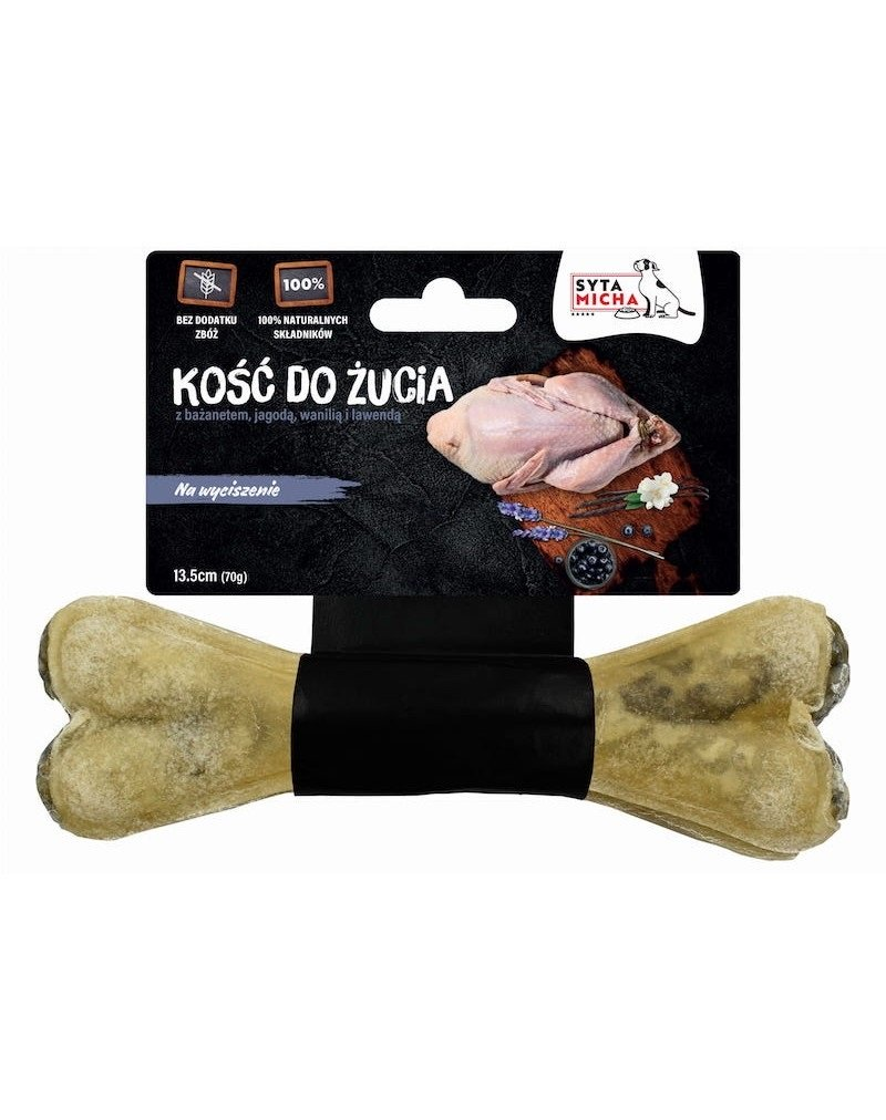 A csont mérete (13,5 cm) univerzális, így minden méretű kutya élvezheti a Syta Micha Funkcionális Csontok rágását.
