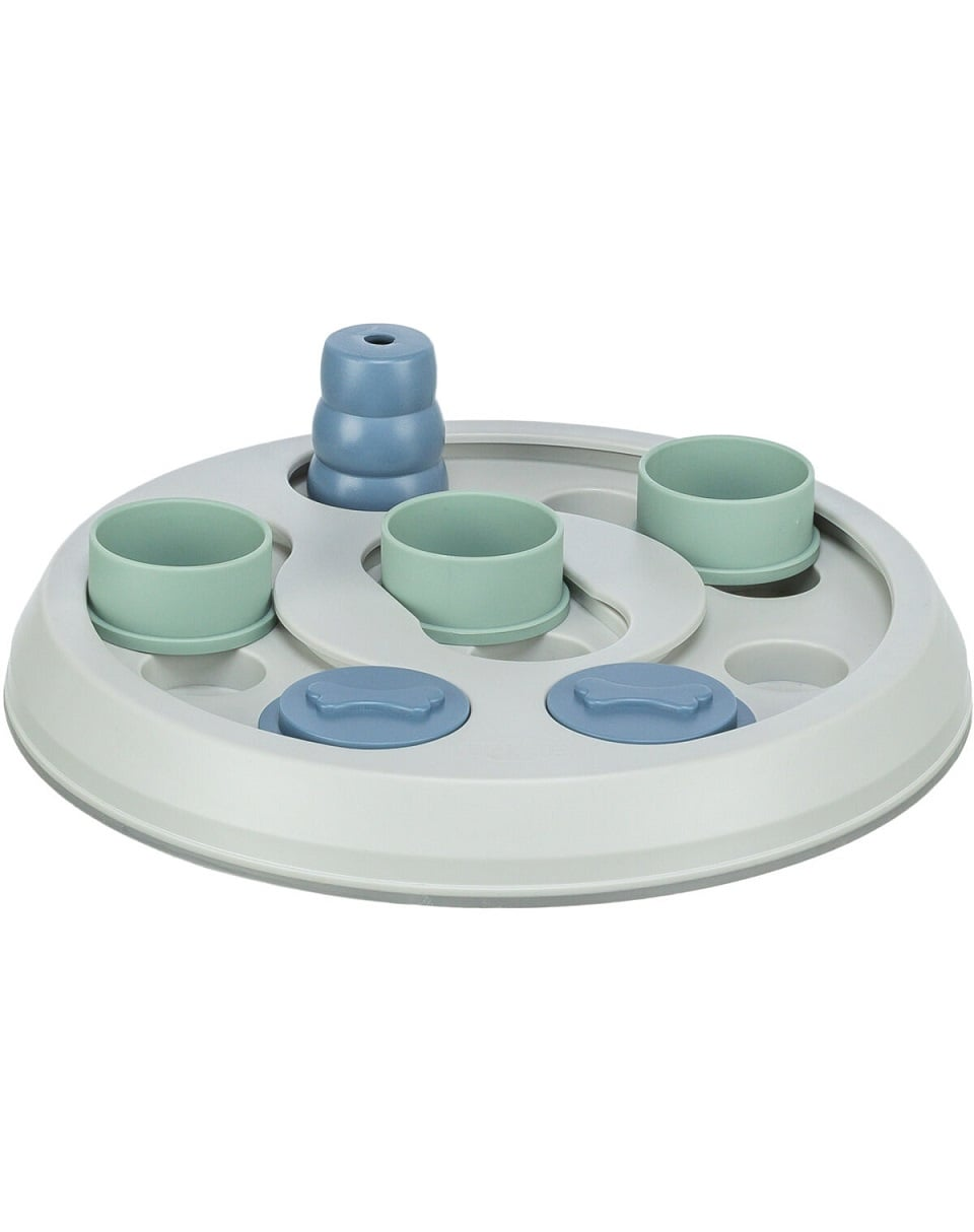 TRIXIE Dog Activity Flip & Fun egy interaktív játék, amelyet kis kutyák számára terveztek, akik szeretnék fejleszteni kognitív és logikai képességeiket. A különböző rejtekhelyek kinyitásának mechanizmusainak, mint például kúpok, csúszó fedél és mélyedések, köszönhetően a kutyának ügyességet és türelmet kell tanúsítania, hogy megszerezze a rejtett finomságokat.