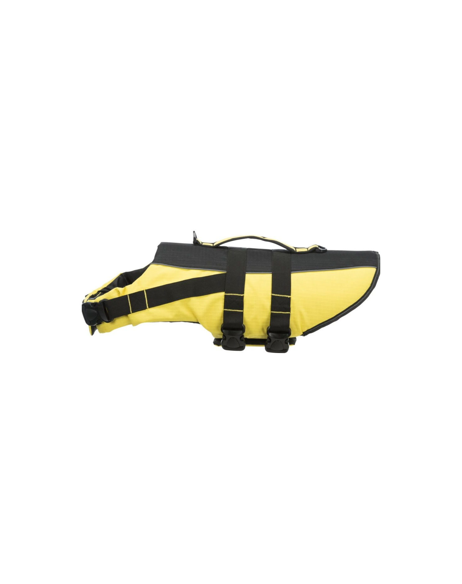 Mentőmellény kutyáknak. Javítja a biztonságot a vízi játék és a csónakázás során. A tépőzárnak és a nejlonpántoknak köszönhetően pontosan és biztonságosan felszerelhető. Két D-gyűrűs fogantyúval ellátott mentőfogantyúval rendelkezik. Az élénk szín és a fényvisszaverő csíkok segítenek a kutya gyors megtalálásában. Anatómiai formájának köszönhetően kényelmes.