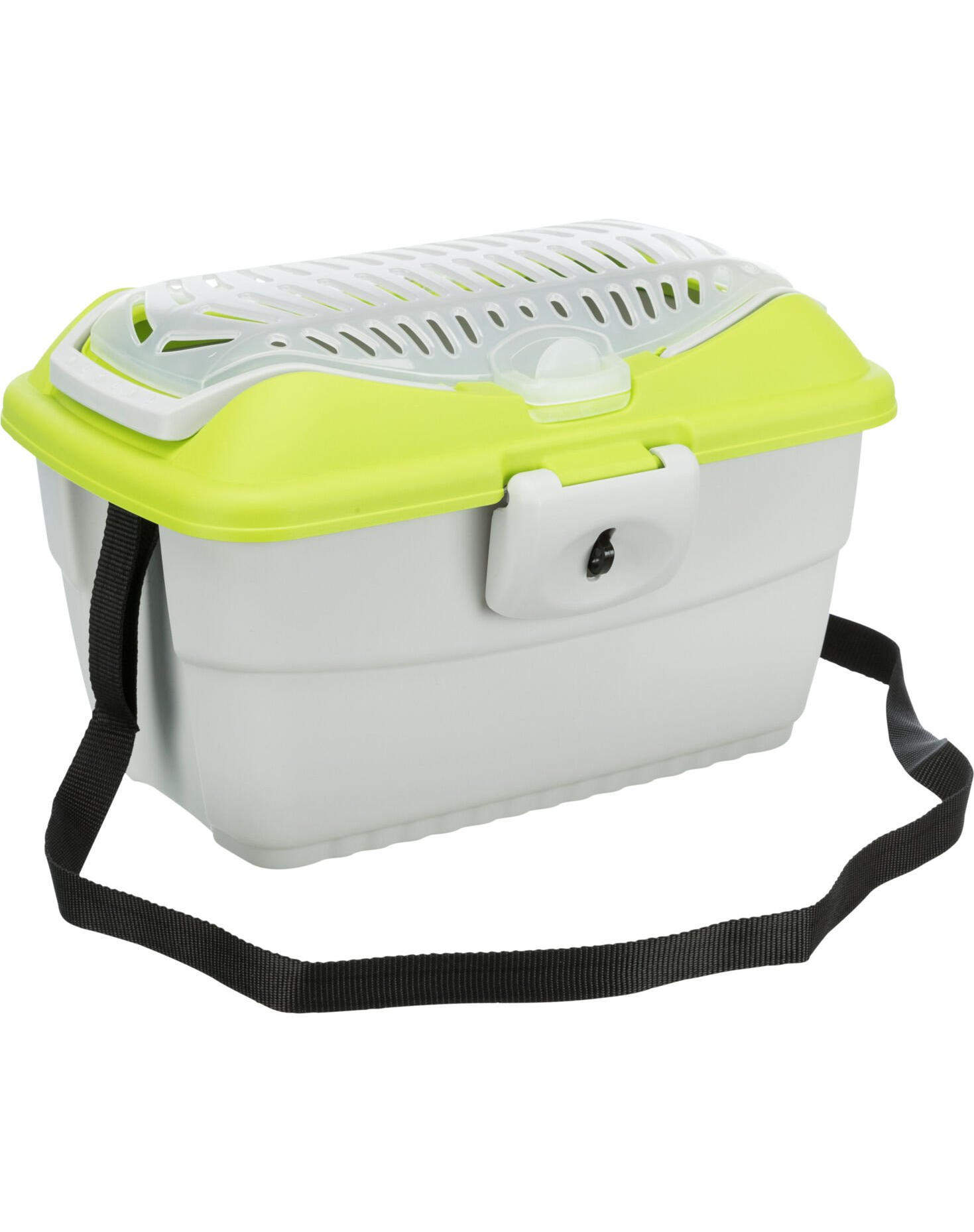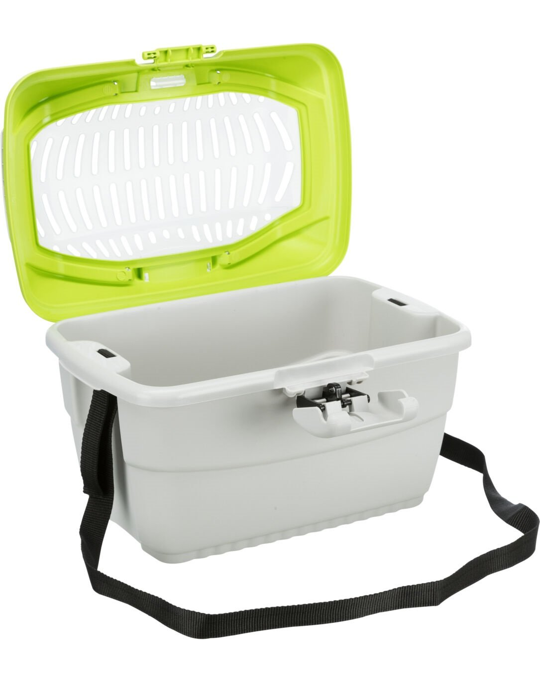 A Mini-Capri szállítóeszköz egy könnyű és funkcionális megoldás, amelyet kisállatok, például tengerimalacok, miniatűr nyulak és más rágcsálók biztonságos szállítására terveztek. A reteszes, felül nyíló fedélnek köszönhetően a kisállat behelyezése és kivétele gyors és kényelmes.