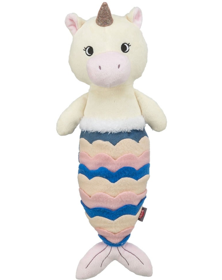 Merülj el a varázslat világában a „Mítikus Lénnyel” – a TRIXIE márkájú plüssjátékkal, amely lenyűgöző mesebeli dizájnjával tűnik ki. Ez a különleges játék, amely egy unikornis és egy sellő kombinációja, rejtekhelyet kínál ízletes jutalomfalatok számára, és minden érintésre hangokat ad ki, amelyek felkeltik a kutya figyelmét és ösztönzik az interaktív játékra.