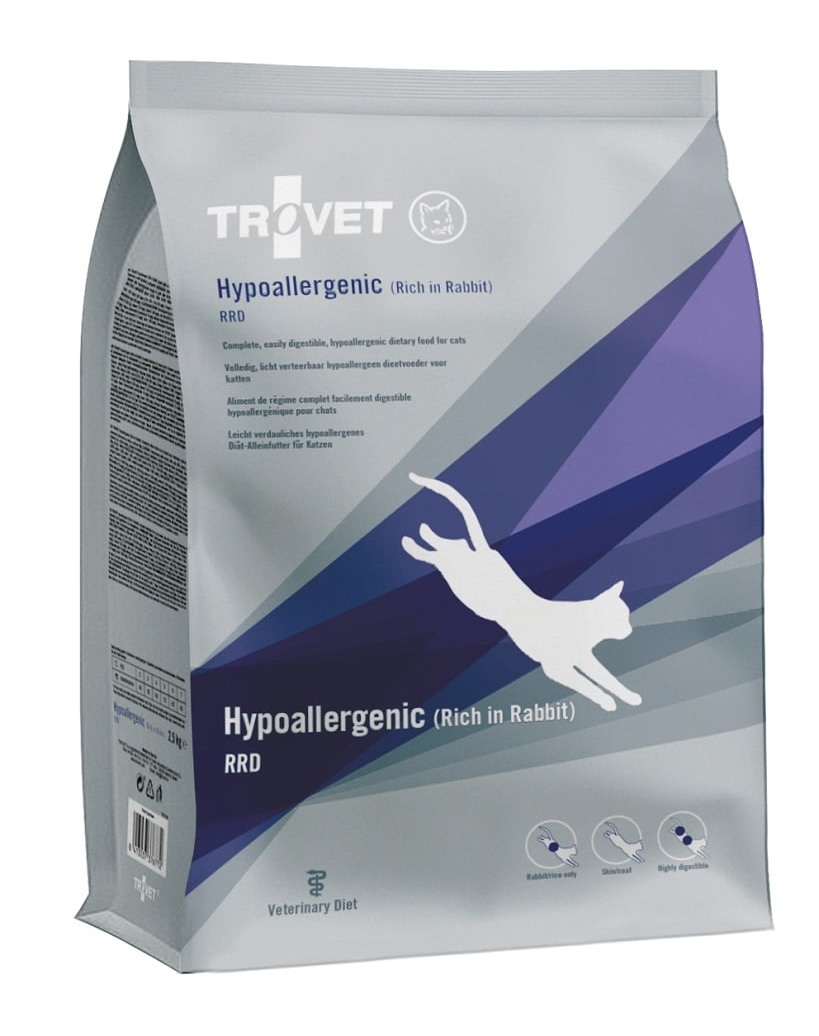 A Trovet RRD diéta válogatott fehérjékből áll, amelyek eltávolítják azokat a tápanyagokat, amelyek allergiához vagy táplálékérzékenységhez vezethetnek. A Trovet RRD diéta egy teljes értékű eledel, amely a legmagasabb minőségű, allergiát nem okozó termékekből származik. A kiváló minőségű nyúlhús az egyetlen fehérjeforrás, míg a szénhidrátok kizárólag rizsből származnak. A Trovet RRD diéta nem tartalmaz tejtermékeket, glutént, laktózt, és nem okozhat ételallergiát.