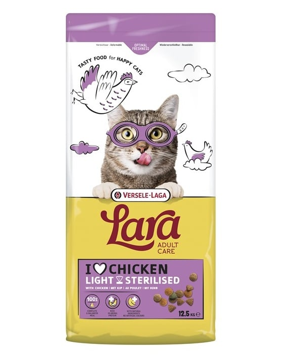 Lara Adult Light Sterilized egy teljes értékű száraz eledel csirkével, amelyet kifejezetten ivartalanított és alacsonyabb fizikai aktivitású macskák számára fejlesztettek ki. Különleges formulája úgy lett megalkotva, hogy támogassa a megfelelő testsúlyt és fenntartsa a macska egészségét minden nap.