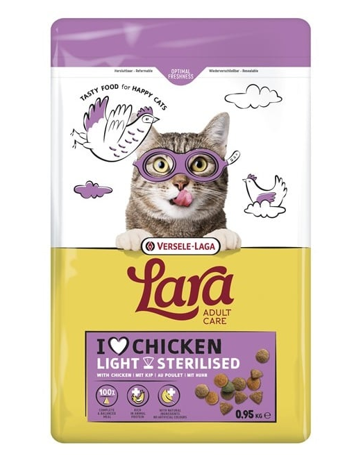 Lara Adult Light Sterilized – csirkével egy magas minőségű száraz eledel, amely ivartalanított felnőtt macskák és kevésbé aktív macskák számára készült. A gondosan kidolgozott receptúra segíti az optimális testsúly fenntartását, miközben teljes tápanyag-, vitamin- és ásványianyag-ellátottságot biztosít az egészséges élethez.